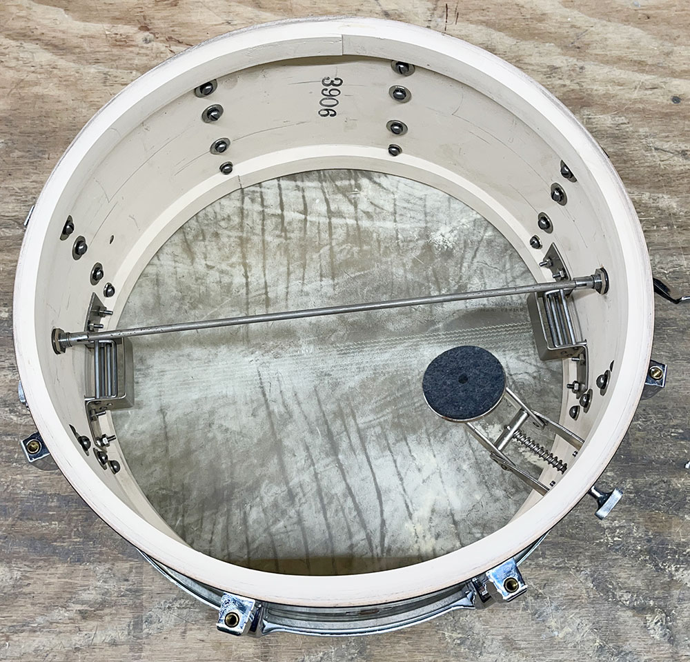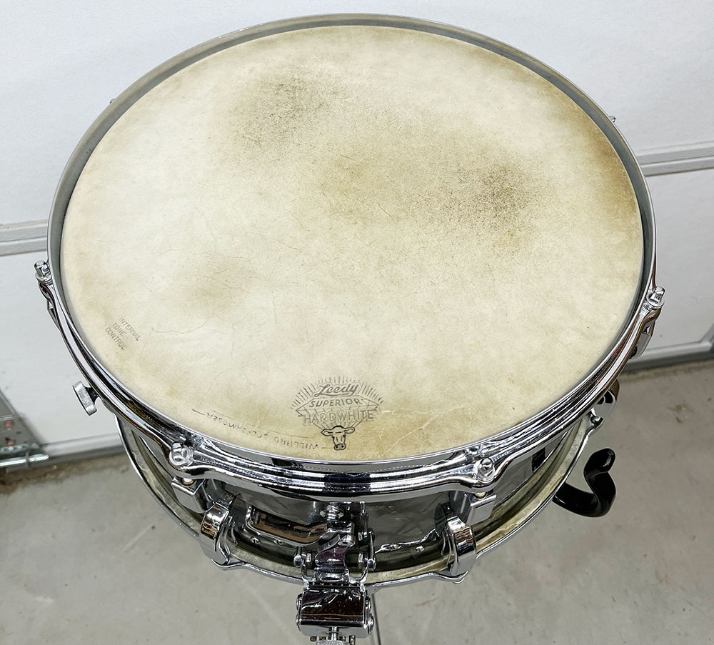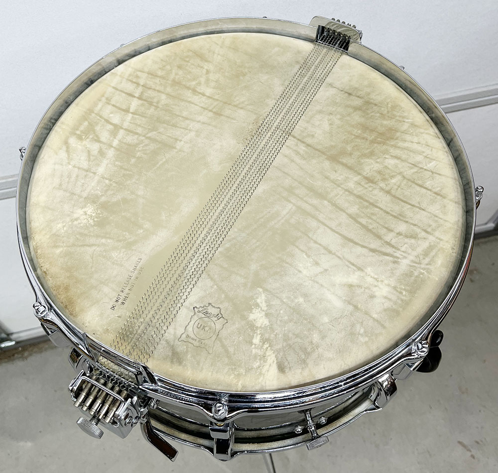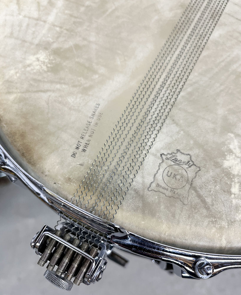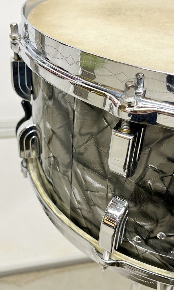 For sale is an absolutely incredible Vintage 1939 Leedy Broadway Parallel Snare Drum in Black Diamond Pearl in near mint shape. Drum appears to be 100% original down to the heads. 6.5″x14″ three ply shell is in-round with very nice original factory edges. Wrap is tight, glossy and in top condition. No mods, issues or extra holes. Very, very minor wear on the chrome hardware as shown – mostly on the muffler knob. Features the engraved stick chopper chrome over brass hoops. Black date stamp of 3906 (June of 1939) present. A time capsule of a snare drum, featuring the most hard to find third generation parallel strainer set up, in remarkable shape. A stunner all around and a crown jewel of any collection.