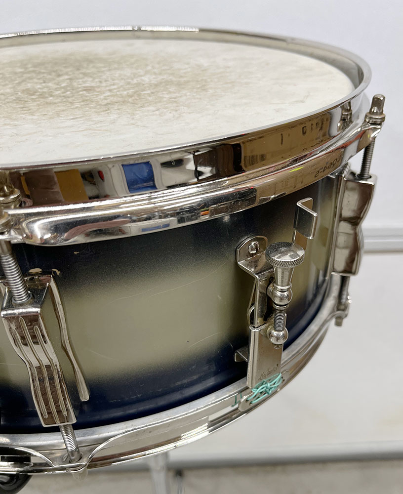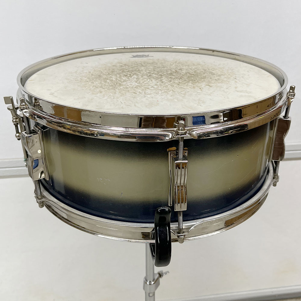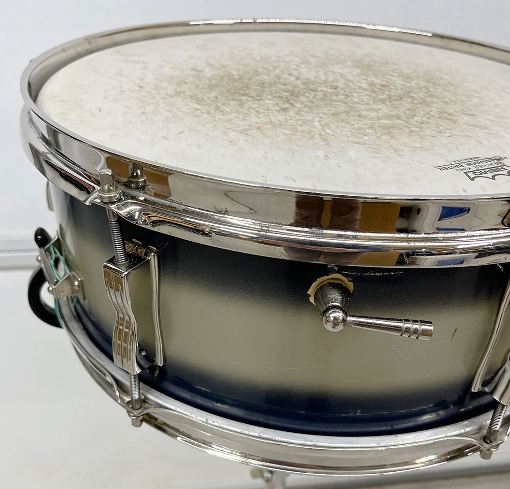 For sale is a nice Vintage 1960s Ludwig Pioneer Snare Drum in Blue & Silver Duco in great players shape. Three ply shell is in-round with original factory edges. No mods, issues or extra holes. Duco paint is spidering and flaking in areas which is typical. Minor wear and oxidation on the nickel hardware. Nickel over brass hoops. Keystone badge with serial of 237823. Overall a great snare with great tone to add to any collection.